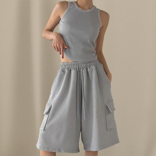 |KSD2594|여성 크롭 골지 나시와 버뮤다 카고 면 반바지 세트