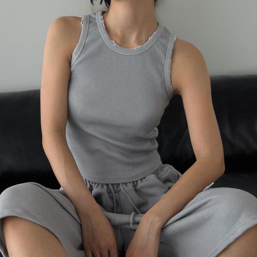 [옷자락]여자 헤짐 크롭 골지나시 버뮤다 카고 면반바지 세트