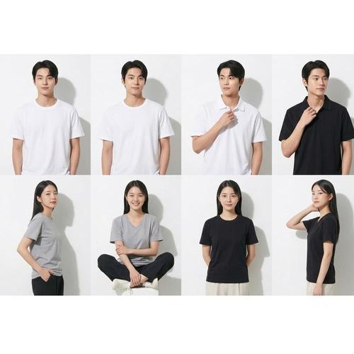 [남여공용 면 티셔츠] 라운드 3종/브이넥 3종/카라넥 2종 중 택1