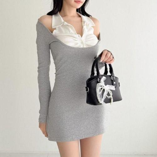 밀키버터 여성용 스트랩 + 루즈핏 셔츠 미니 원피스 세트 MB2212