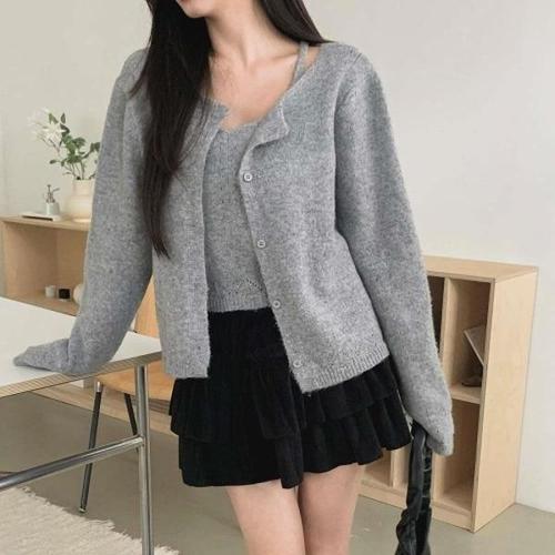 [포커스] FS4A7ST01092_골지 카라넥 가디건 민소매 세트