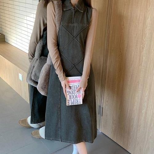 데님원피스 빈티지 데님 민소매 카라 캐주얼 롱 원피스 데일리룩