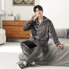 YANGTA 소프트 극세사 카라 수면 잠옷 겨울 남성용 잠옷 상하의 세트