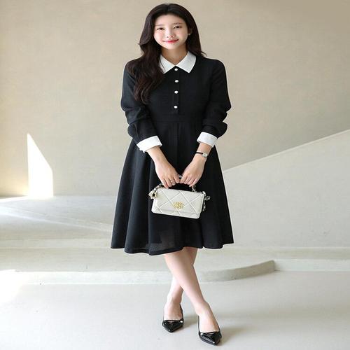 [드리다]여자 가을 겨울 카라 플리츠 A라인 빅사이즈 플레어 원피스 40-50대 미시 중년 엄마옷 하객 상견..