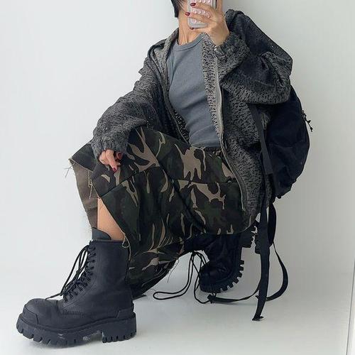[다잇템] 여성 면원단 그런지 버뮤다 카모 워시드 쇼츠