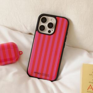 코튼 스트라이프 에폭시 범퍼 폰케이스 딥핑크
