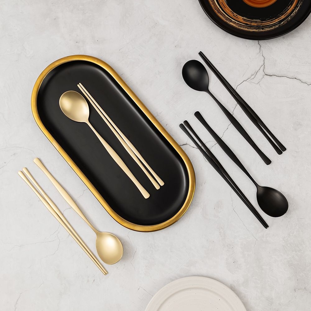 TEMU 싱글팩 한국식 이동용 수저세트 (보관함 포함) - 광택 있는 스테인리스강, 가정/학교/주방 사용에 적합한 홈다이닝용품, 스타일리시하고 컴팩트한 디자인의 고급수저, 내구성과 녹슬지 않은 소재로 제작된 여행친화형외출용기