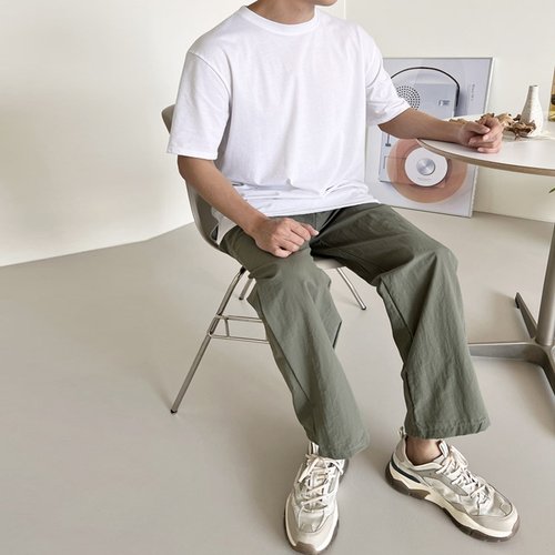 남자 테이퍼드 반밴딩 일자 면바지 맨투맨 티셔츠 슬랙스 남성 봄 팬츠NE-PTA-Q004-카키