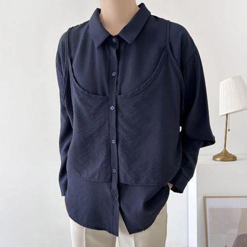 더핑크 / 슈민 오버핏 시스루 롤업 셔츠 + 나시 set