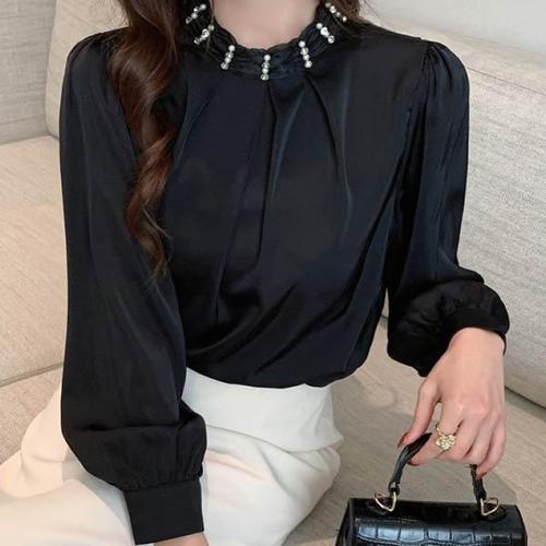 [휴드]펠틴 라운드 넥 비즈 블라우스 3color