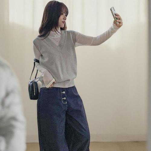 [미라클세븐]여성 브이넥 니트 베스트 심플 무지컬러 레귤러핏