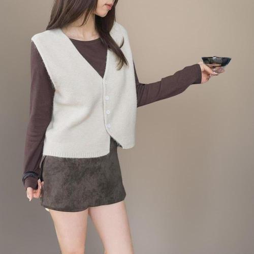 [미라클세븐]여성용 브이넥 단추 니트 베스트 무지컬러 클래식 스타일