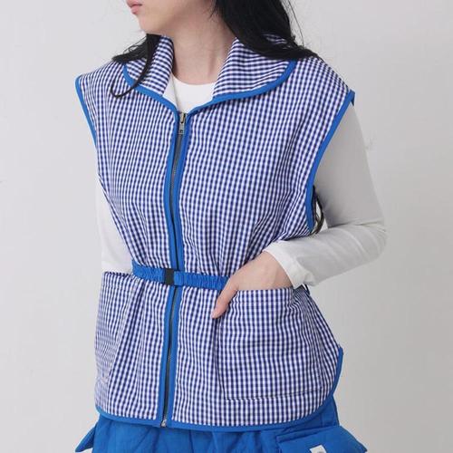[미라클세븐]여성용 컬러 체크 카라 벨트 패딩 조끼
