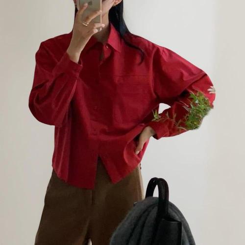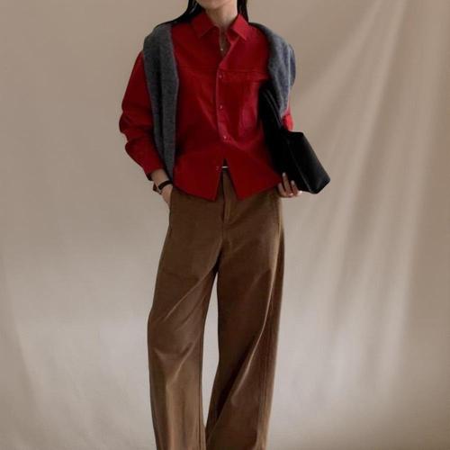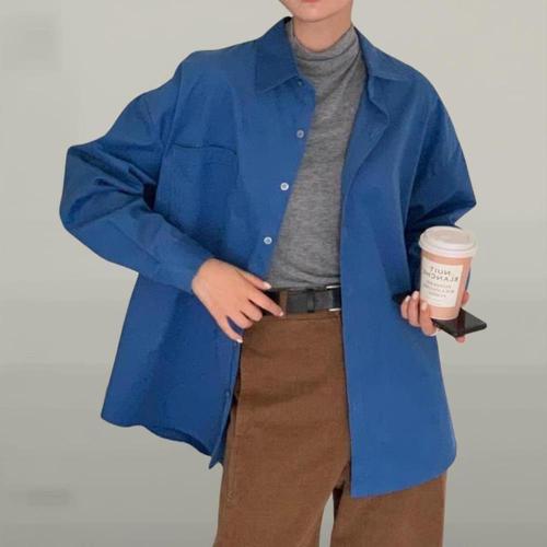 [미라클세븐]여성 키치무드 패치 포인트 무지컬러 골덴 오버핏 셔츠