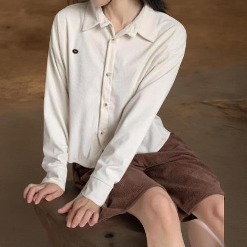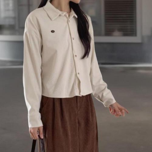 [미라클세븐]여성 키치무드 패치 디자인 무지컬러 골덴 여유핏 셔츠