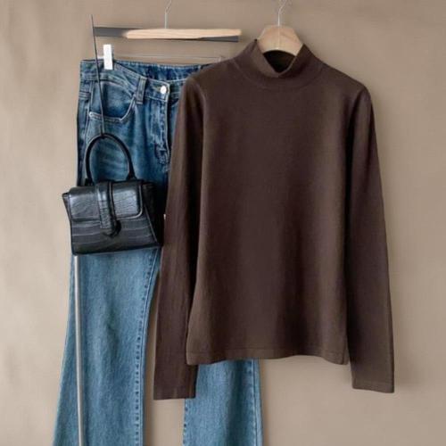 [미라클세븐]여성용 포근한 비스코스 폴라넥 니트 스웨터 - 무지컬러 데일리 착용