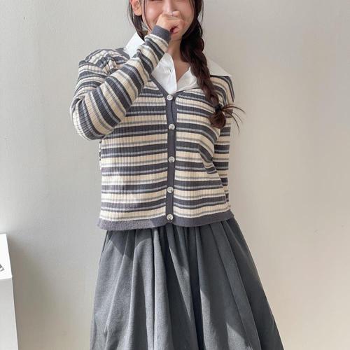 [미라클세븐]여성 컬러 블록 스트라이프 브이넥 골지 니트 가디건