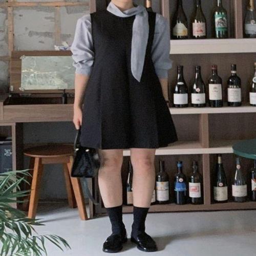 [모노무드]LMO 라운드칼라 프리미엄 핀턱 주름 이너 탱크탑드레스