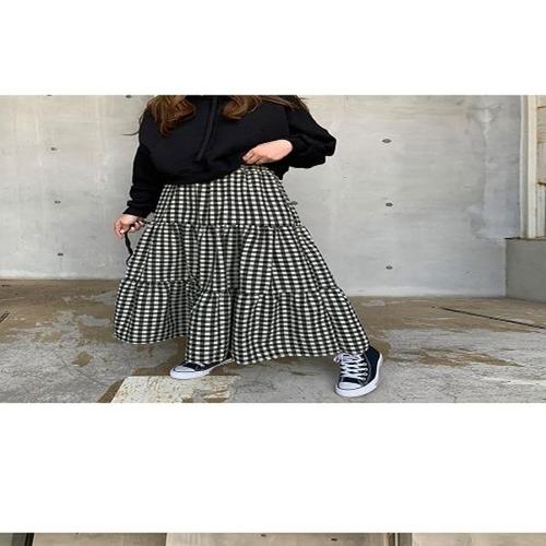 [엄지척]F62996 얇은 모직 캉캉 체크 롱 스커트 체크치마_19956899_667501