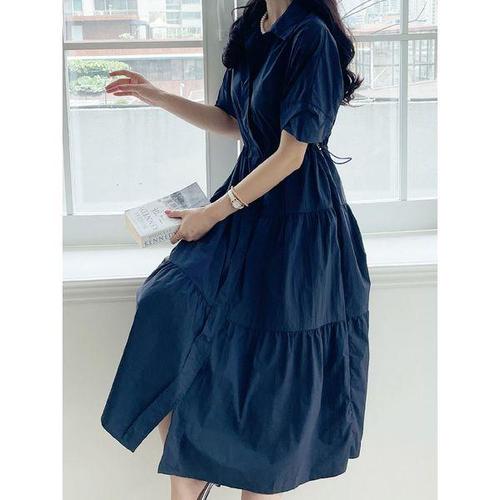 레이츄 / 델라 A라인 캉캉 면 반팔 롱 원피스 (5컬러)