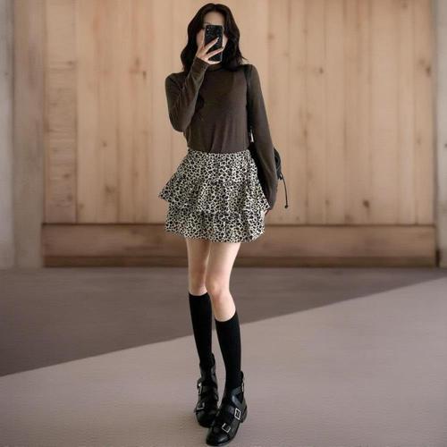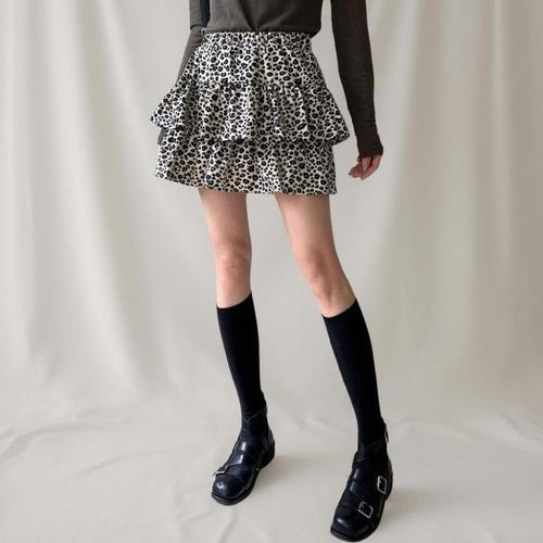 [신상오픈런]여성 레오파드 프릴 미니 스커트 캉캉 스타일