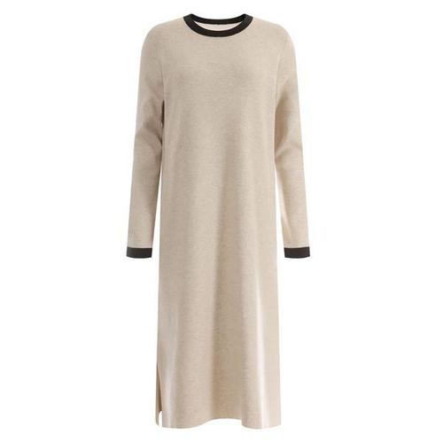 [샵앤]배색라인 여성 라운드 H라인 캐시미어 긴팔 니트 원피스 FR.B-WDR-1619-오트밀