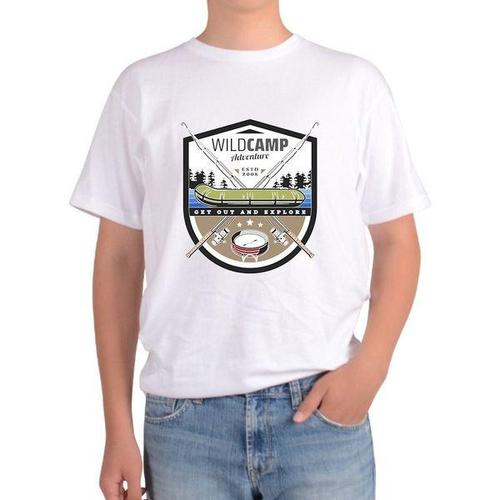 [에이치플러스몰]길단 아시아핏 반팔티 WILD CAMP 모험 취미 낚시 나침반 보트그림 다양한색상 전사이즈