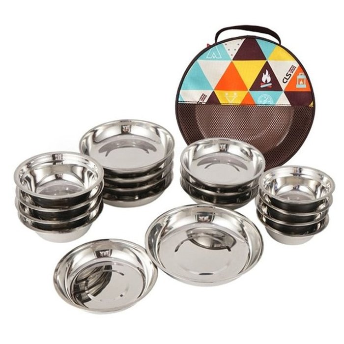 키친아트 캠핑 식기세트 스텐 접시 그릇 13p용 휴대용 취사용품