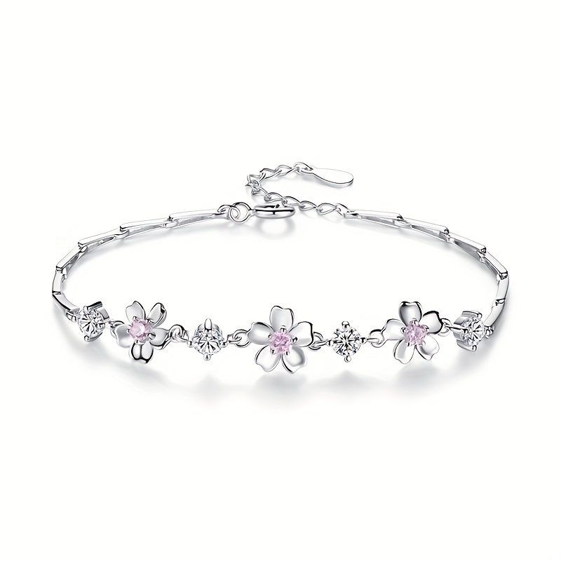 TEMU 여성용 우아한 플로럴 팔찌 - 섬세한 체인에 합성 지르코니아 꽃 장식, 데일리부터 파티까지 여성용 주얼리, 생일, 기념일, 특별한 날 선물로 완벽 - 사계절 착용, 휴가 액세서리, 여성스러운 디자인, 정교한 장인 정신, 패션 액세서리, 주얼리 애호가