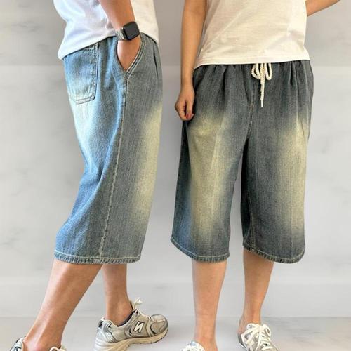 [옷자락]남녀 커플 반바지 밴딩 워싱 여름 청버뮤다 팬츠