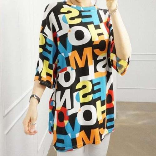 [셀럽하우스]라운드 MNOQ6913 화사한 S9060 반팔티 프린팅 박스반팔 커플반