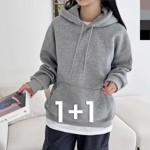 1+1 남녀공용 기모 후드티 루즈핏 캐주얼 긴팔 맨투맨 상의 패션 레터링 기모 아우터 5xl까지 빅사이즈 학생 커플룩 단체복