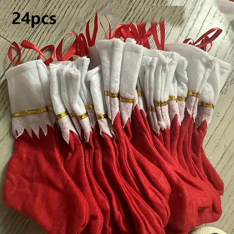 TEMU 24개 펠트 크리스마스 스타킹, 파티 스타킹, 크리스마스 장식 스타킹, 시골 크리스마스 휴일 스타킹, 홈 - 크리스마스 레드 스타킹 장식 세트 - 완벽한 크리스마스 장식 선물 - 크리스마스 트리 장식