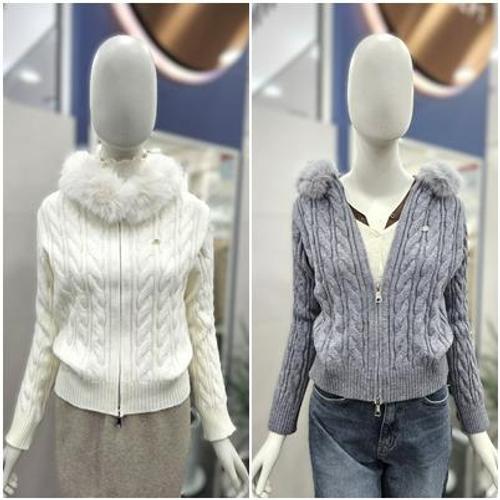 [에이치플러스몰]트렌디 스탠다드 멀티컬러 투웨이집업 지퍼라인 트위스트우먼 오픈니트