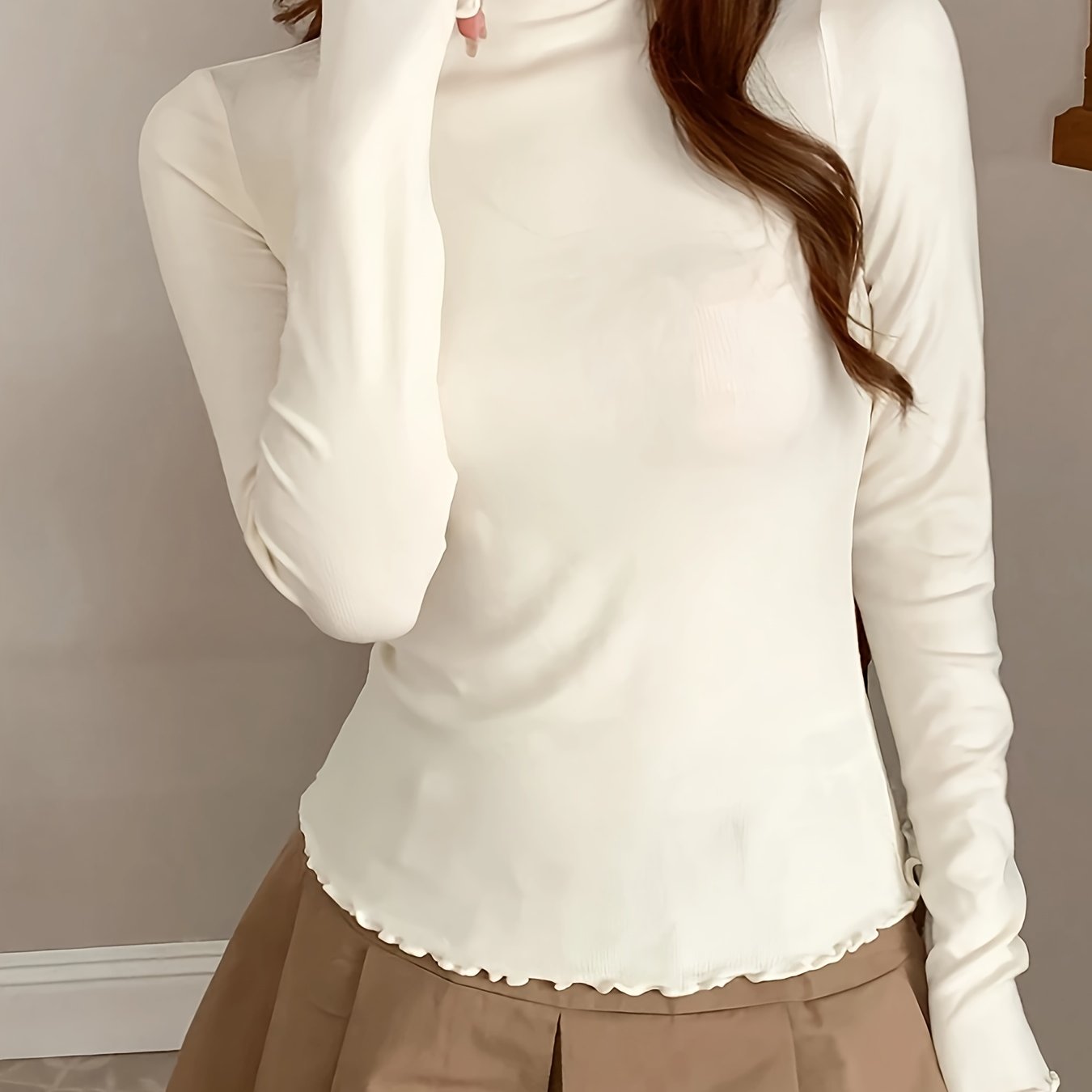 TEMU 가을/겨울 패션 여성용 하이넥 솔리드 컬러 슬림핏 긴팔 티셔츠 탑