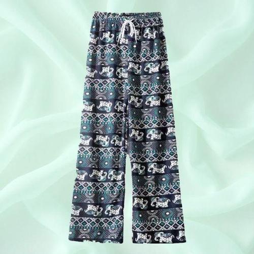 [에이치플러스몰]코끼리 패턴 여성 여름 얇은 밴딩 와이드 바지 홈웨어