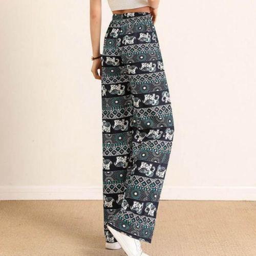 [에이치플러스몰]여성 코끼리 패턴 허리밴딩 통 일자 여름 바지 팬츠