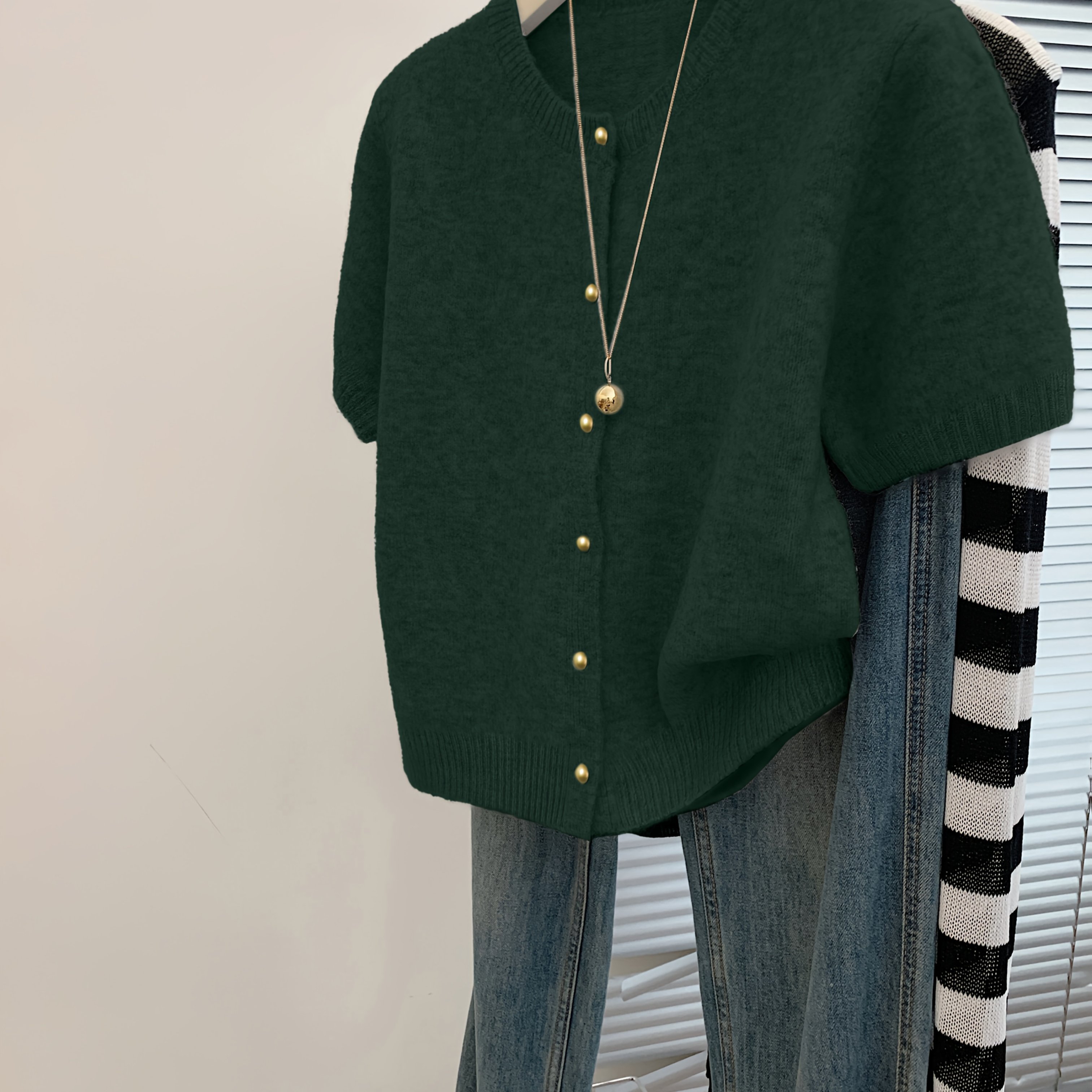 TEMU 우아한 여성용 카디건 - 메탈 버튼이 달린 시크한 단색 반팔 오픈 프론트 스웨터, 캐주얼 또는 사무실 착용을 위한 다용도 봄/여름 레이어링 피스, 봄 여름 의류 | 시크한 카디건 | 건축, 여성 우아한 겨울 니트웨어 컬러 스톤 포함, 여성 우아한 겨울 니트웨어, 여성용 탑, 루즈 카디건, 버튼 라운드 넥, 여성용 카디건, 품질 좋은 여성용 카디건
