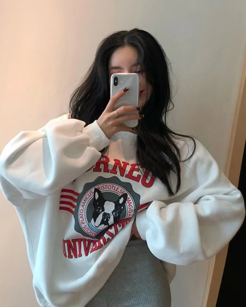 2025 가을 겨울 두꺼운 플리스 여성용 스웨트셔츠 다용도 레이지 스타일 한국 통근룩 라운드넥 긴팔 루즈핏