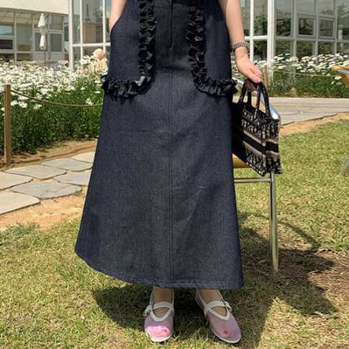 코코블랙 / 프릴 데님 스커트