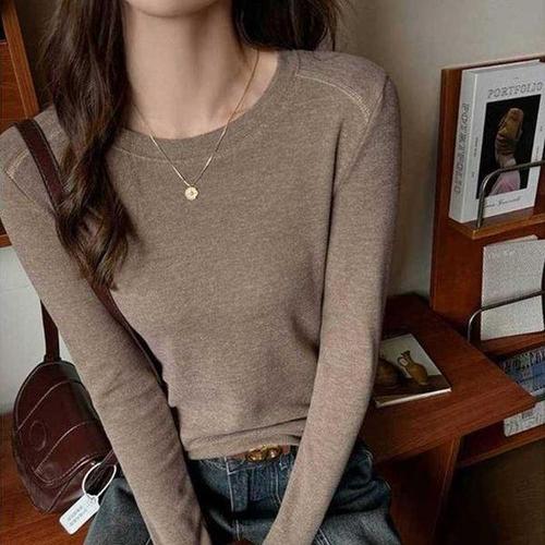 [셀러허브_여성트랜드패션]ONM 가을 데이트 룩 여성 면 긴팔 무지 라운드 넥