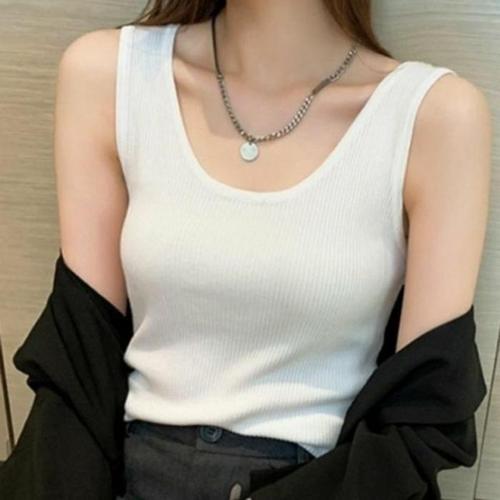 Zjaiss 솔리드 컬러 기본 리브 니트 탱크 탑 여성 여름 빈티지 민소매 Camis 90s Cool Girls streetwear Soft Tees