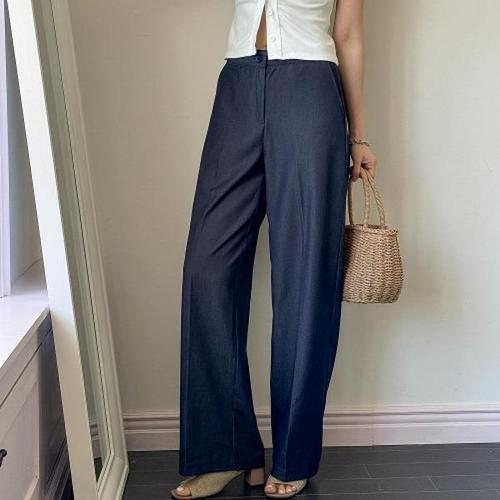 [다잇템][다잇템] 여자 쿨데님팬츠 오피스룩 속밴딩 와이드핏 바지_21273299_588872