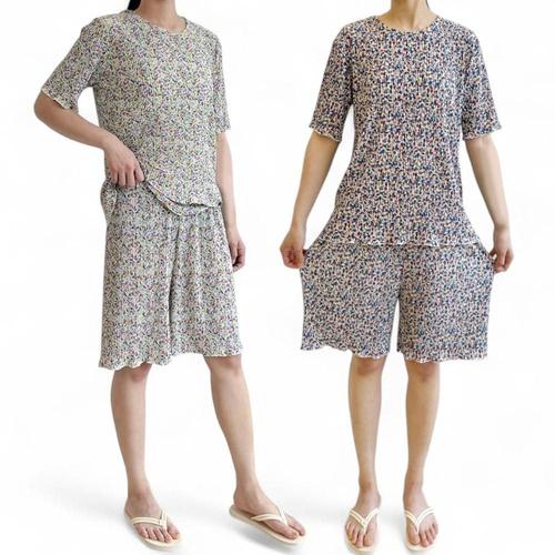 플라워 쿨링 반팔 5부 8부 냉감 팬츠 홈웨어 밴딩바지