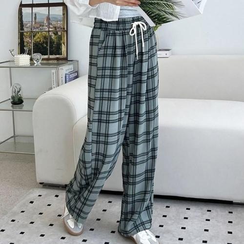 [옷자락] 남자 홈웨어 쿨링 더블 체크 밴딩 와이드 팬츠