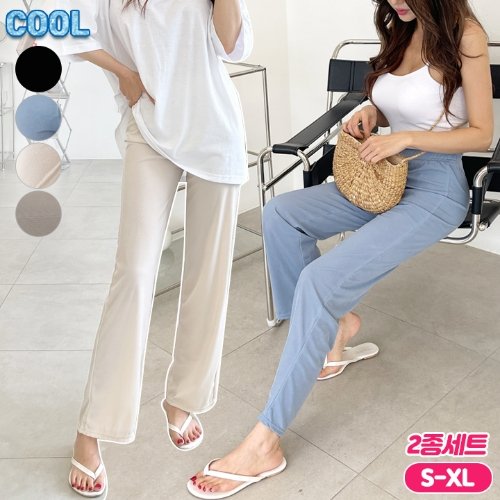 [가비진] 2종세트 여성용 시원한 쿨링 아이스 스판 밴딩 슬림 일자 팬츠 바지 여름 쿨바지