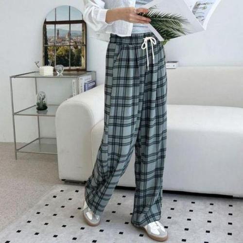 [셀러허브_여성트랜드패션]ONM 여성 여름 밴딩 체크 와이드 쿨링 팬츠 통 찰랑