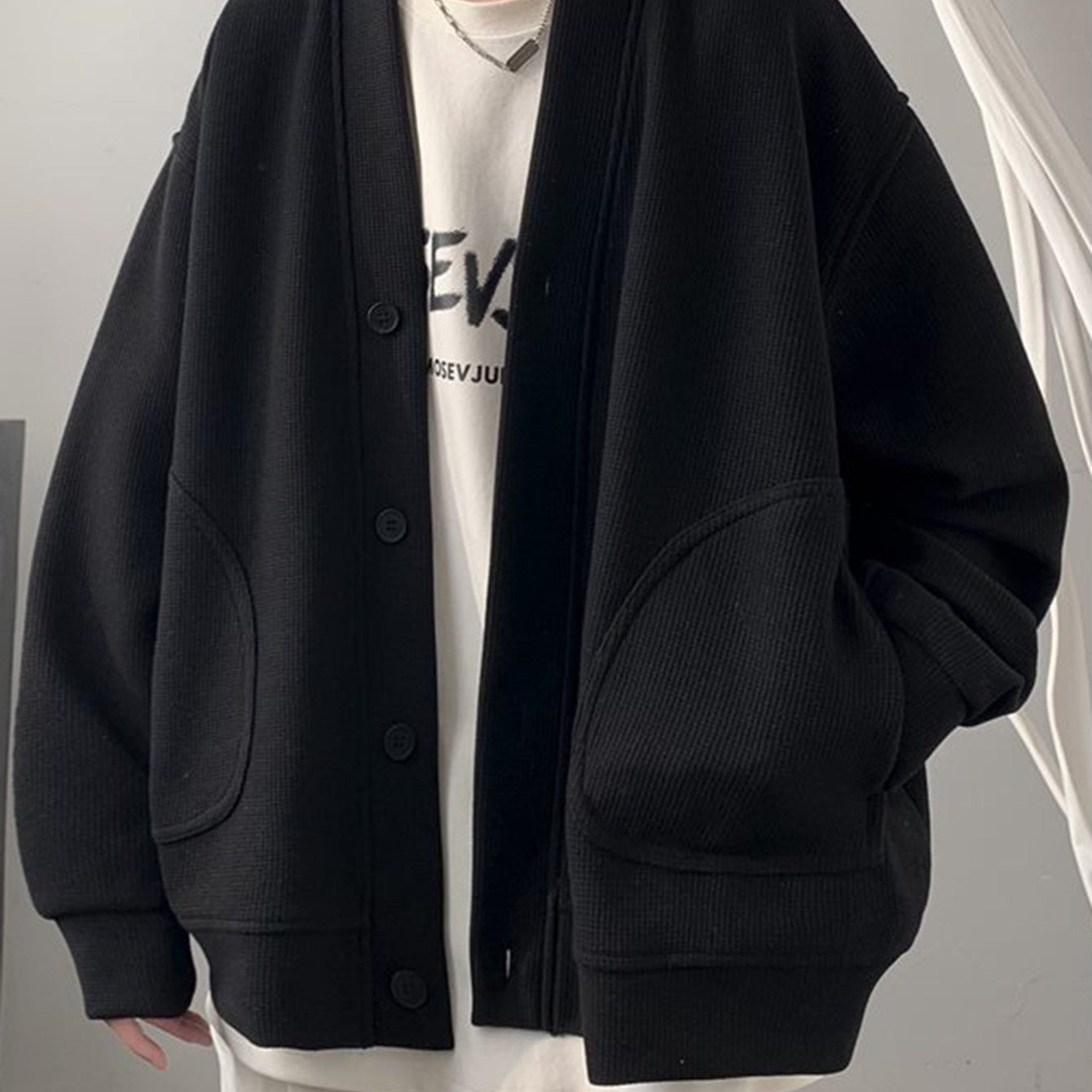 TEMU 남성 봄가을 브이넥 캐주얼 오버핏 골지 기본 니트 카디건 남성가디건간절기 패션 편안한 니트 상의