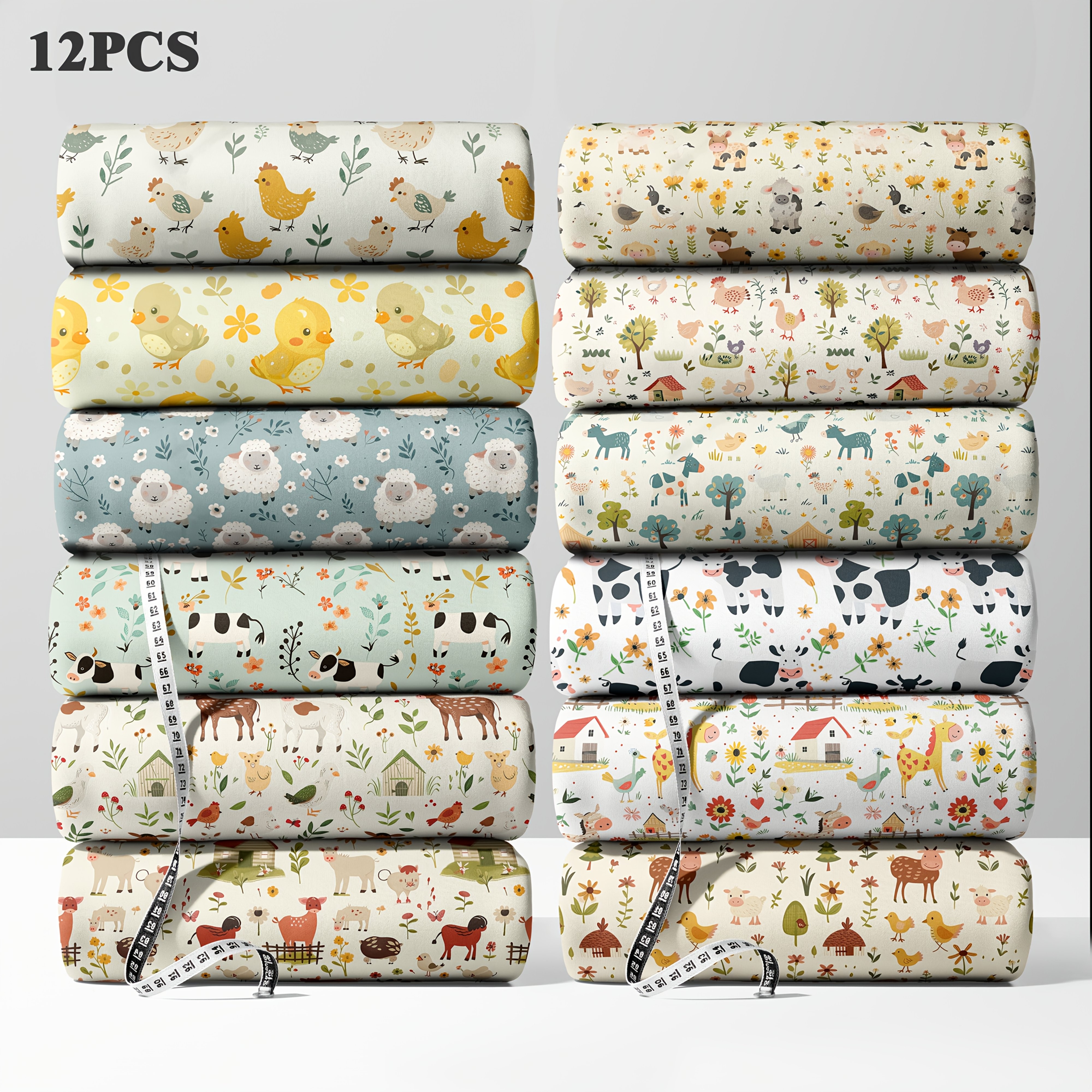 TEMU 12pcs 귀여운 농장 동물 패턴 DIY 공예 장식, 미리 자른 지방 8분 패치 직물 120gms, 베개 커버, 퀼트, 옷 등에 적합, 휴일 선물 및 선물 포장에 완벽합니다! 9.45*19.7inch