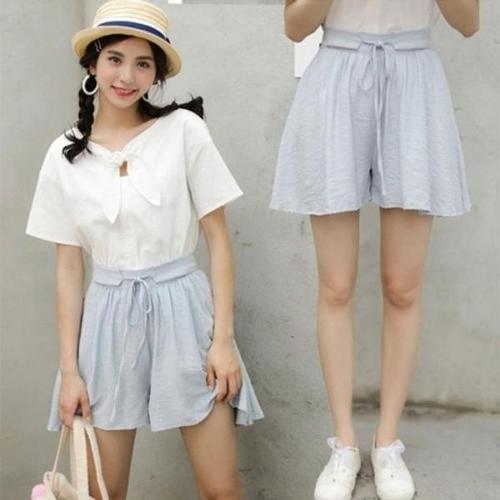 큐롯 반바지 치마반바지 허리 뒤 밴드 리본장식